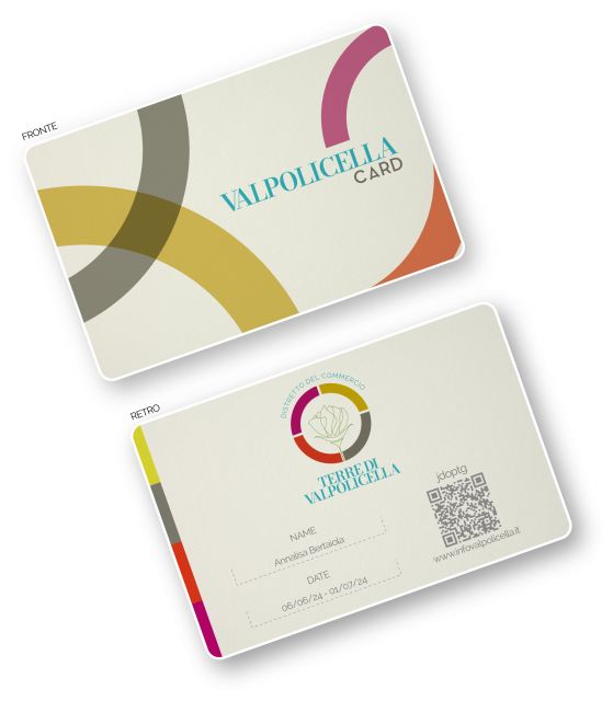 La Valpolicella Card è lo strumento che ti permetterà  di aumentare il valore del tuo soggiorno in Valpolicella, questo perchè mostrandola presso gli esercizi convenzionati, potrai usufruire di tanti vantaggi per l'intero periodo del tuo soggiorno.